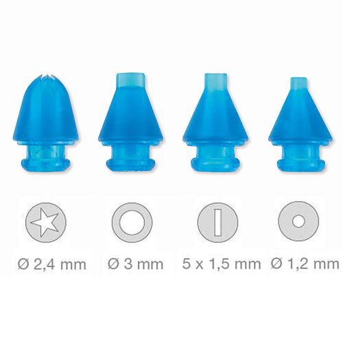 Dekorativno pero Silikomart je idealno za okraševanje tort, kolačkov ali piškotov s stopljeno čokolado, kremami in tekočimi mešanicami. Set vsebuje silikonsko telo, štiri nastavke za dekoracijo in pokrovček. Odlično za ustvarjanje lepih in natančnih dekoracij.